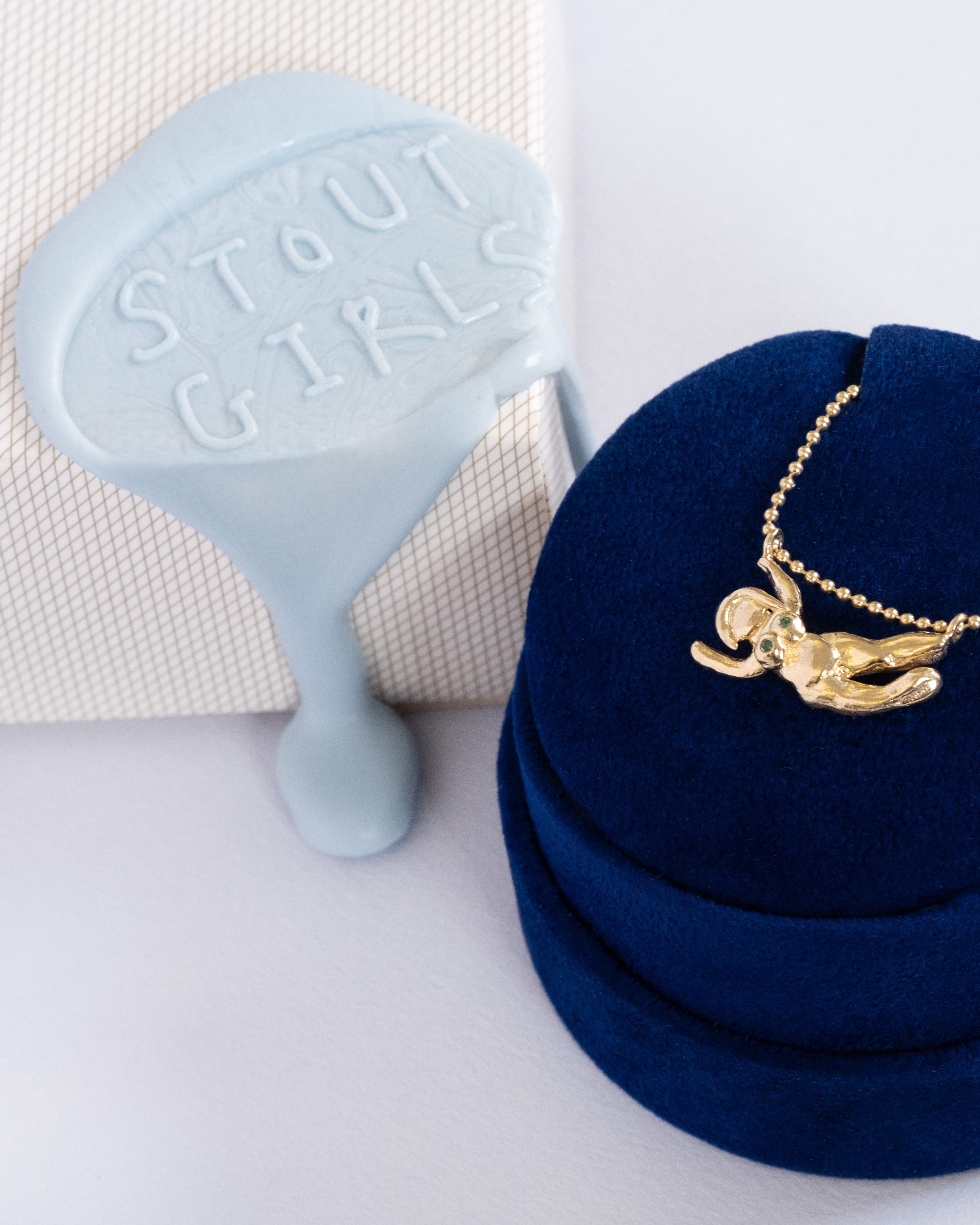 In addition to your jewelry, your package will include an Italian microsuede pendant box enclosed with a STOUT GIRLS wax seal as well as a certificate of authenticity detailing your numbered edition.