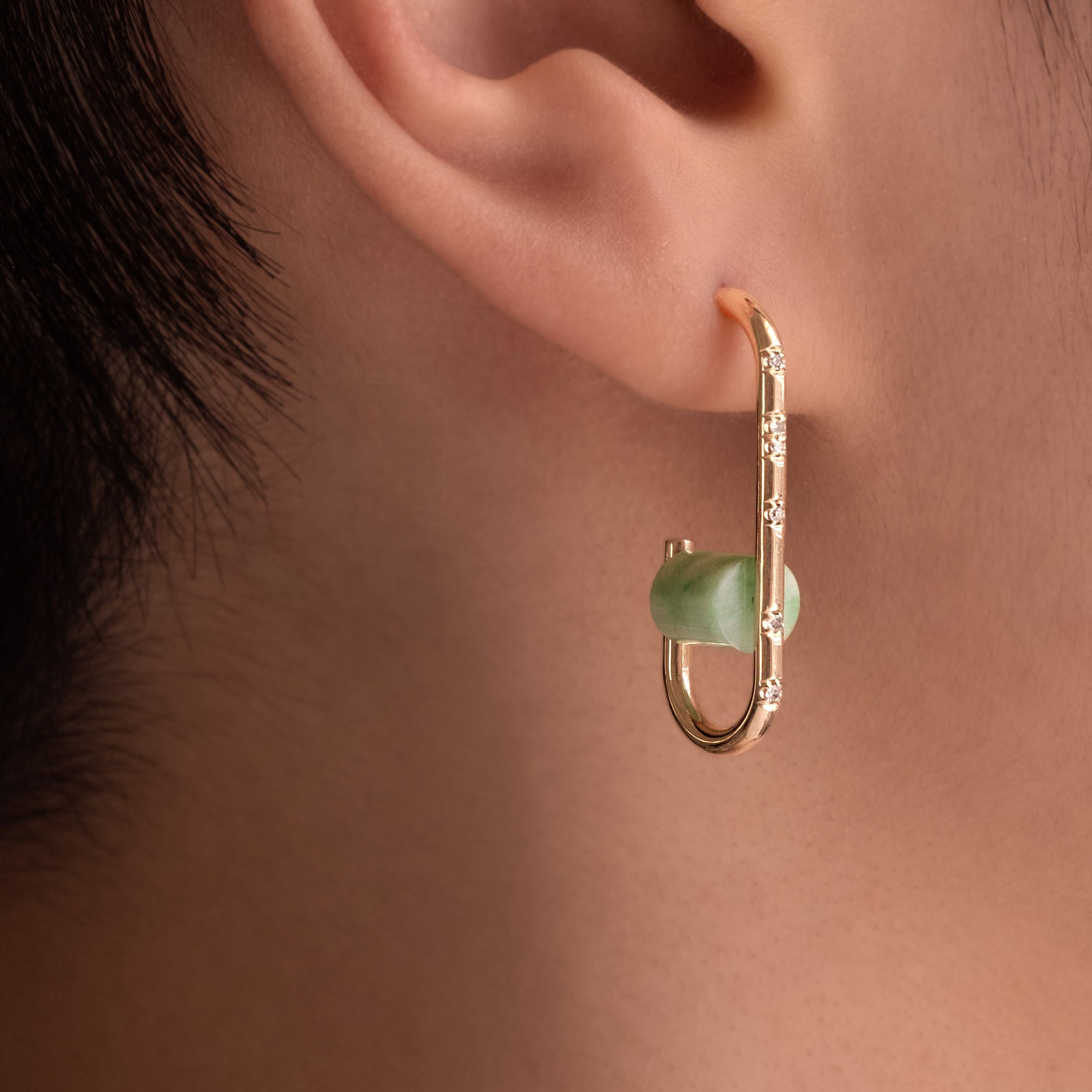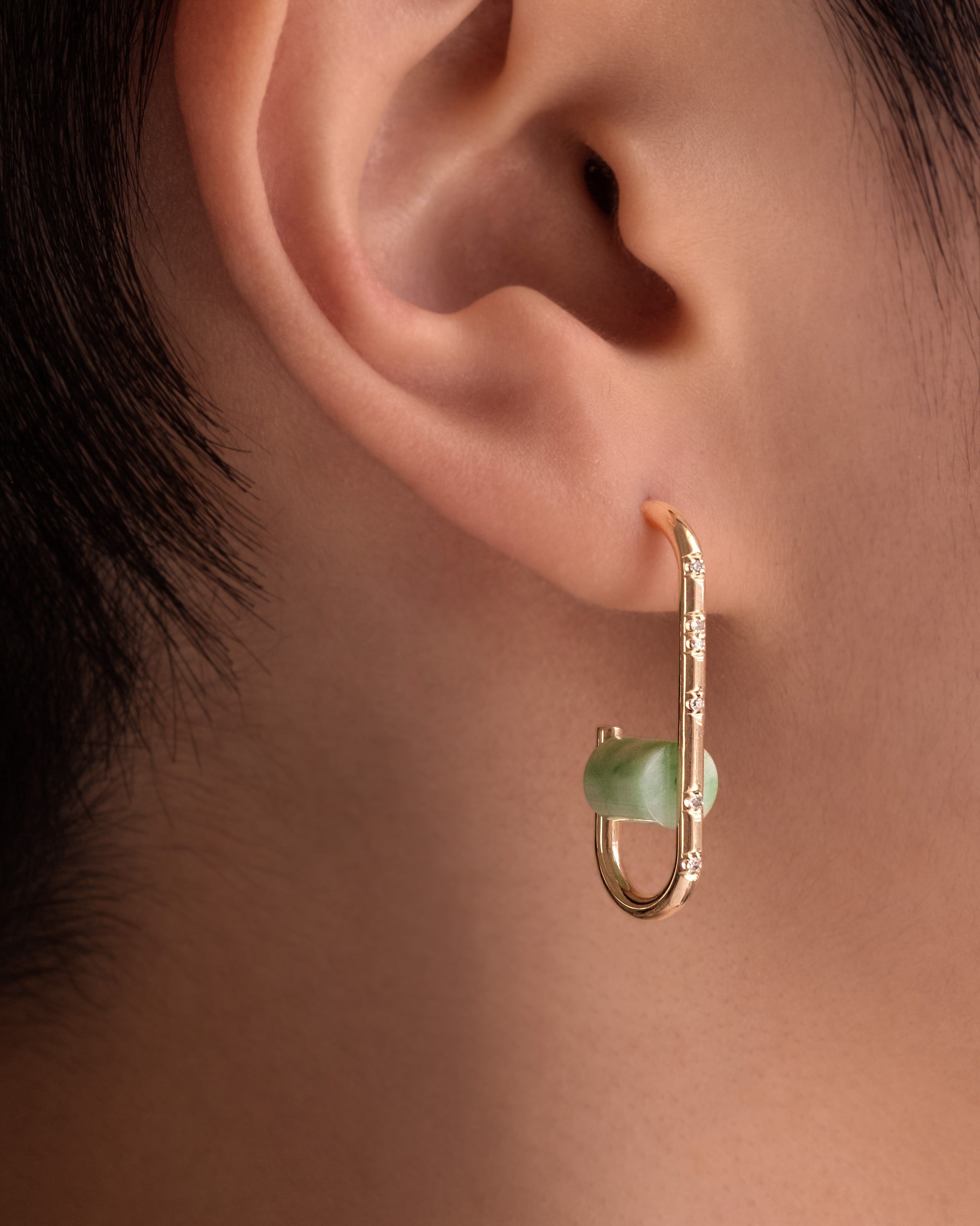 The subtle quality of jade creates a unique design opportunity for us to play with contrast using bright diamonds or deeply saturated colored gemstones. As jade is a softer gemstone, we tend to set it in more protective setting styles, or off of the hands in earrings and necklaces.
