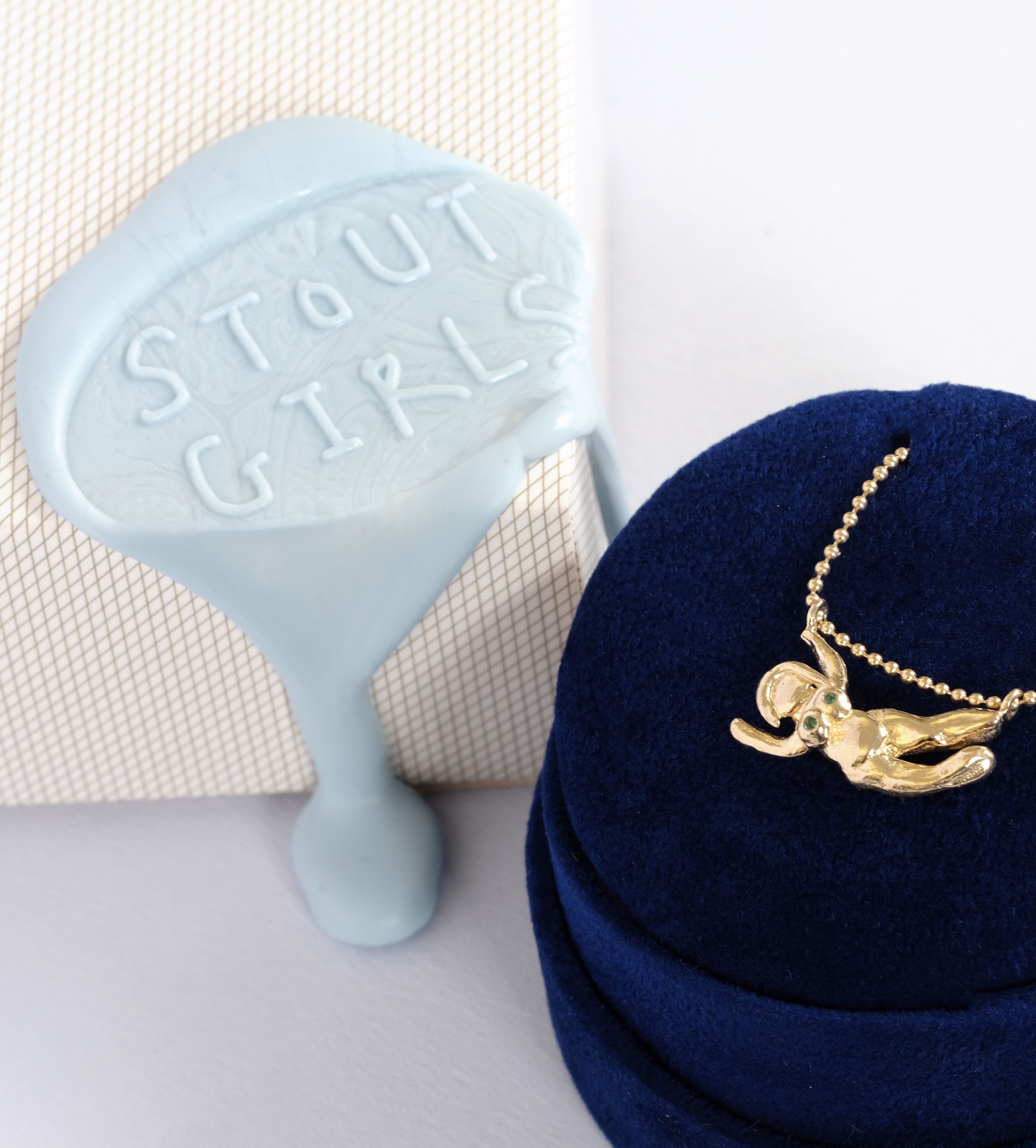 In addition to your jewelry, your package will include an Italian microsuede pendant box enclosed with a STOUT GIRLS wax seal as well as a certificate of authenticity detailing your numbered edition.