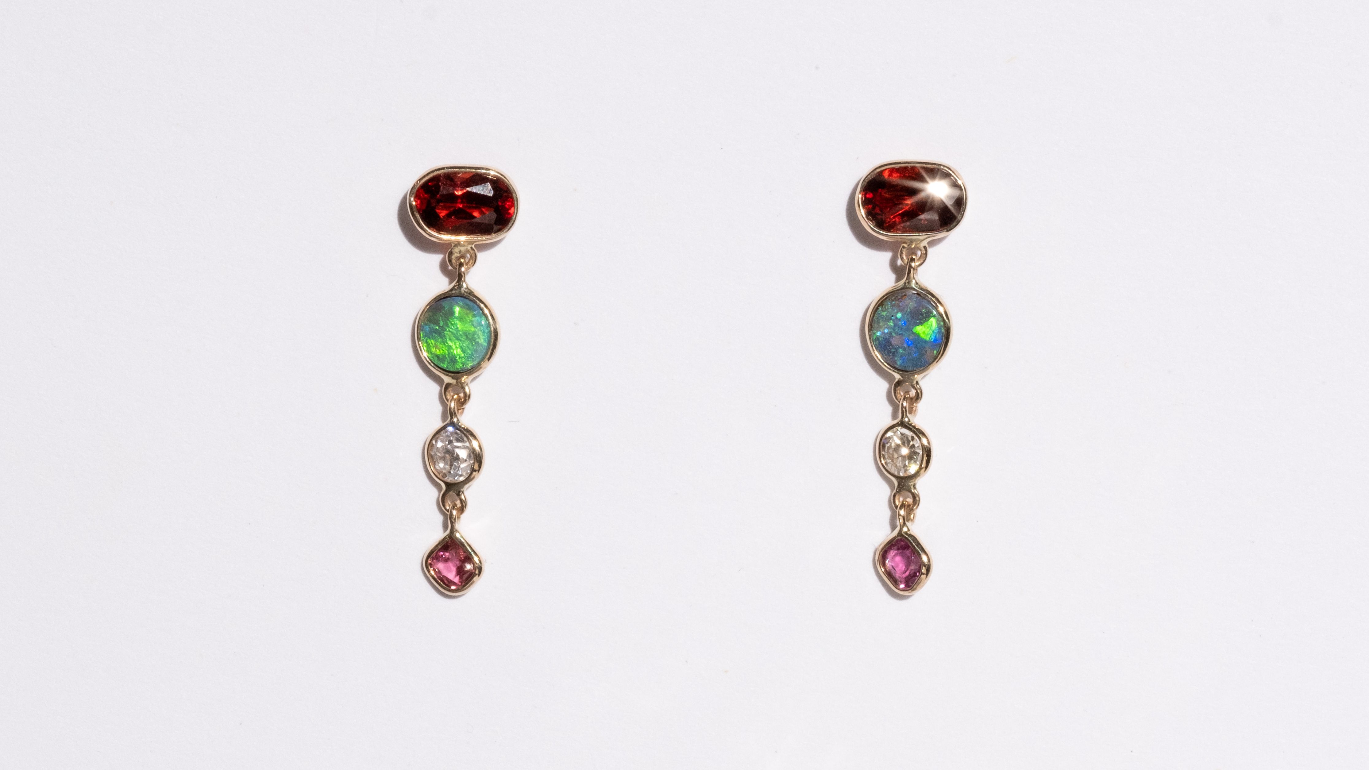 She had amassed a “motley crew” of gemstones throughout her years working in jewelry, and wanted to find a way to bring all of these stones together in a pair of special, go-with-everything earrings. Our Thea earrings were the perfect style to show off her eclectic stone collection- just check out those opals! It was a joy to bring these to life and be sure to check out Emily’s fabulous antique finds Jean Jean Vintage.