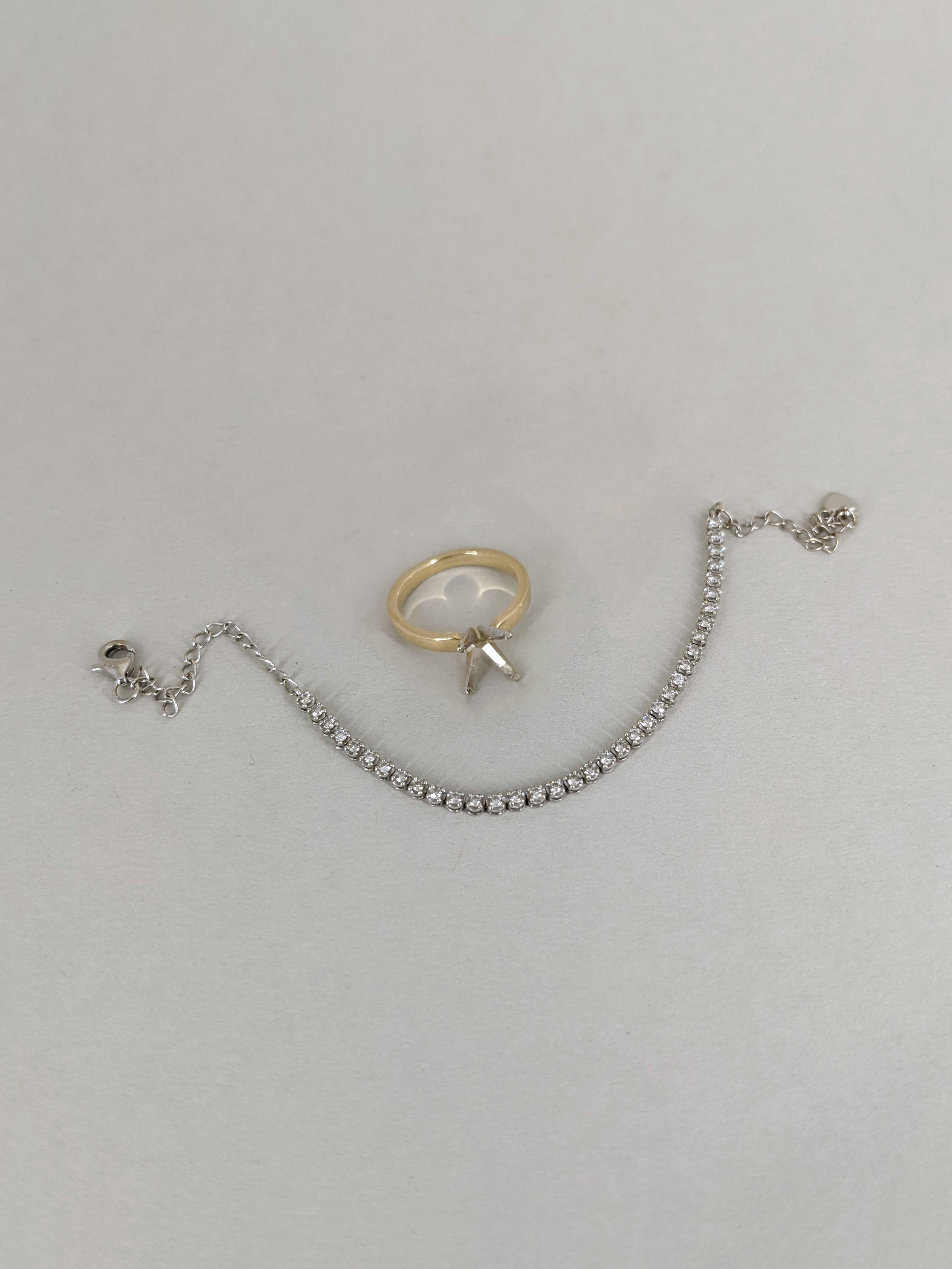 Some pieces of jewelry play many roles over time, like the ring setting that Maddy brought to us which had been both her mother's engagement ring as well as her own prior to a breakup. We melted the gold from the setting to create a flat top signet ring for Maddy and set it with diamonds from a tennis bracelet that had been a gift from her ex.