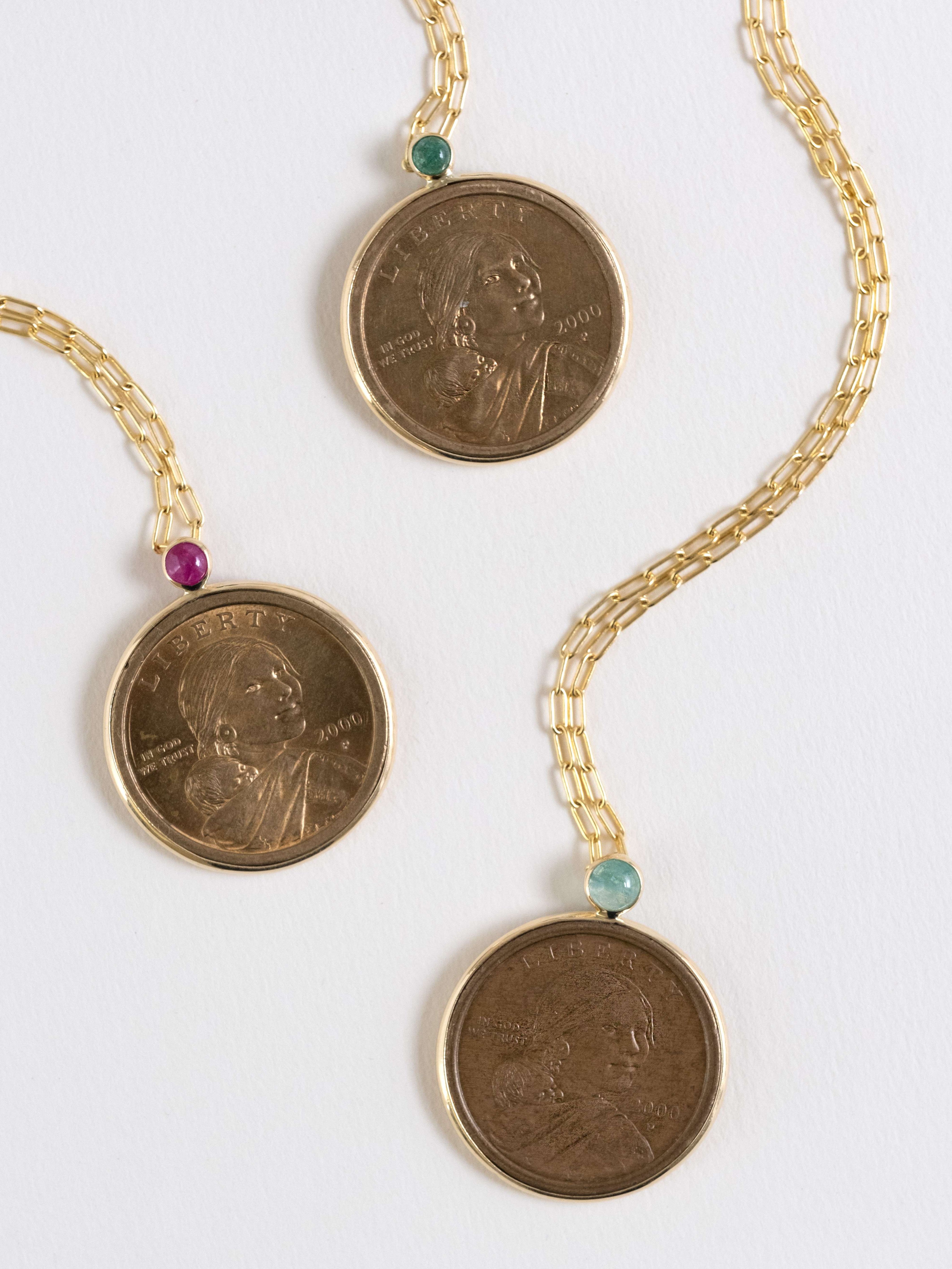 Coin necklaces are an enduring favorite at SPUR headquarters. A petite accent stone and a custom solid gold bezel elevate your sentimental coin to fine jewelry. This style layers well but is substantial enough to wear alone. We also love setting coins as statement rings.