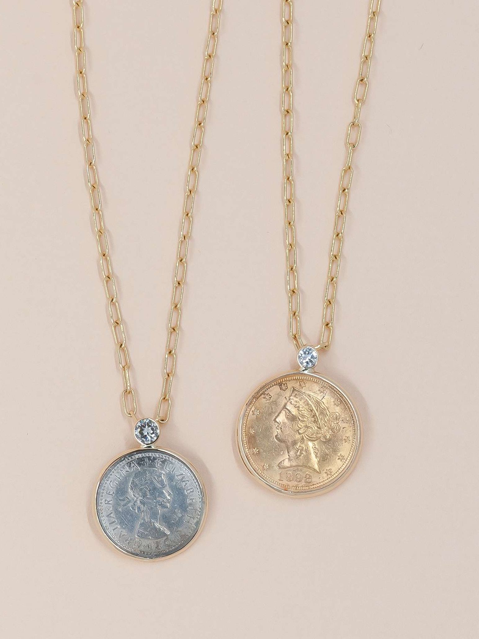 Coin necklaces range from $920-$2000 depending on the size of your coin and other design details.