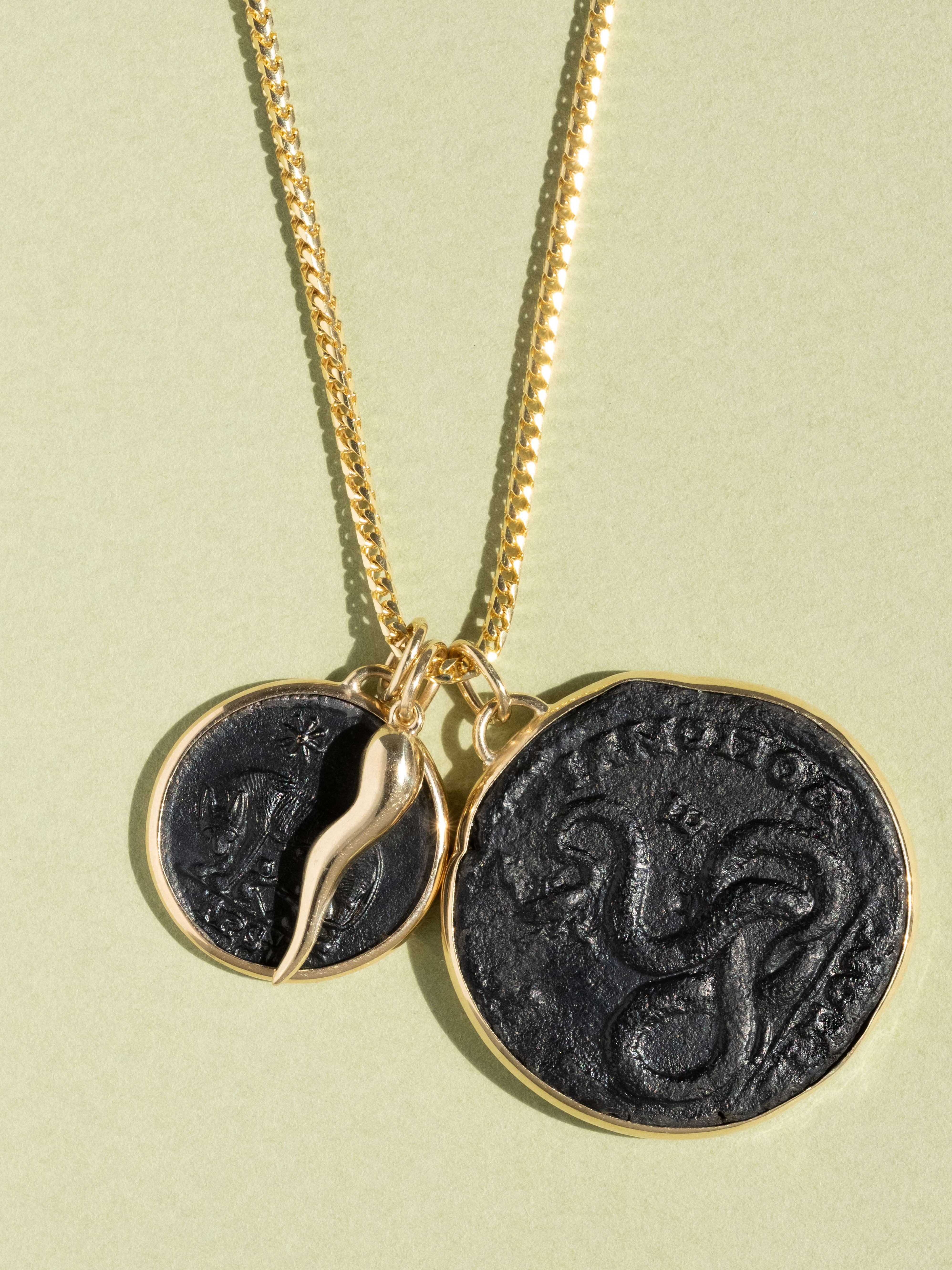 Coin necklaces are an enduring favorite at SPUR headquarters. A custom solid gold bezel elevates your sentimental coin to fine jewelry. This style layers well but is substantial enough to wear alone.