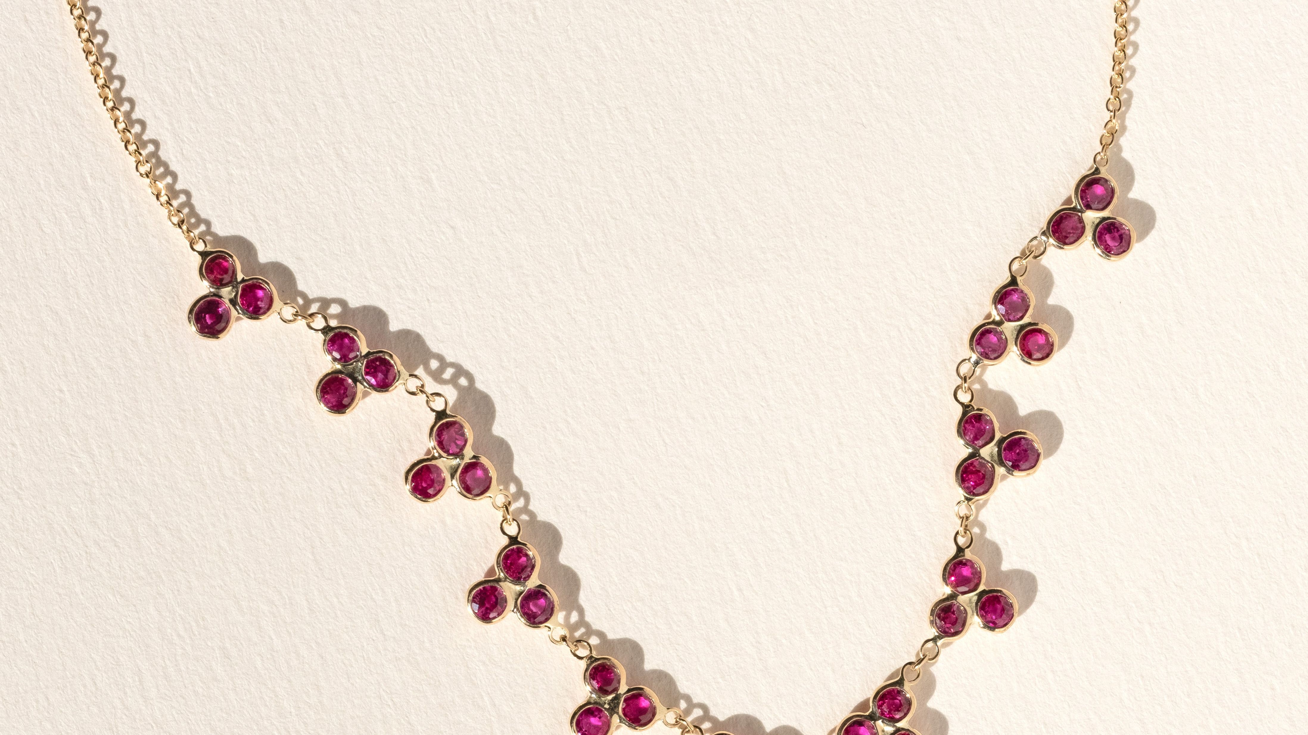 Having a July birthday, Melissa received ruby jewelry throughout her life from family and friends. (Yes, I'm continuing my birthstone renovations theme!) She frequently switches her necklaces out and loved the idea of creating an occasion worthy piece that brought this collection of stones together. Using the tiny rubies from her cluster hoops as well as a larger stone from a pendant, we created a ruby collar that is bold and dressy enough for more formal events, while still feeling light and delicate enough to layer with her other necklaces for everyday wear.