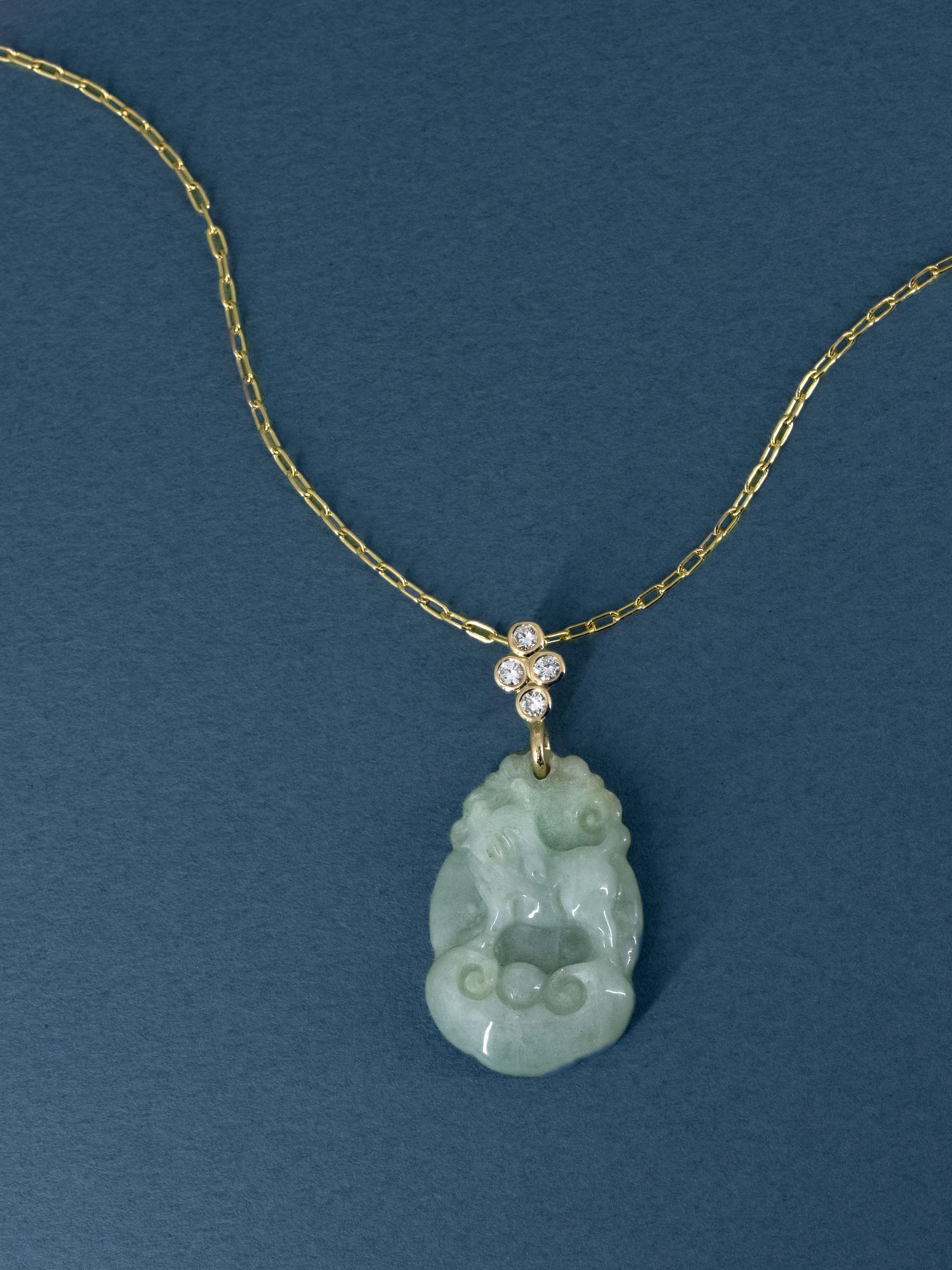 Sierra's beautiful jade pendant was a gift from a childhood trip to China and she's worn it most days of her life since. The original chain and link never quite did it justice and after several repairs she decided it was time for an upgrade. The petite diamonds came from a bracelet of her mom's that barely survived a trip through the wash. We loved bringing symbols of both of Sierra's parents together in one necklace with details infused with her personal style.